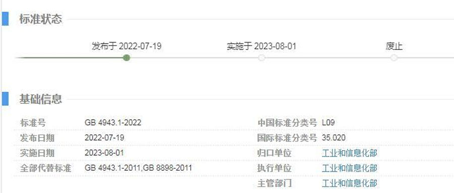 新版GB4943.1-2022什么時候能下證?