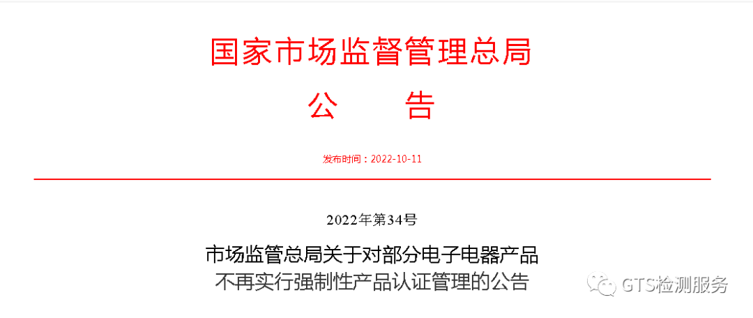 市場監管總局關于對部分電子電器產品不再實行強制性產品認證管理的公告